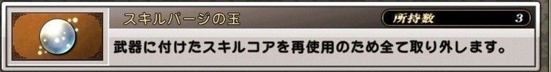 「スキルパージの玉」を1つ消費し、装着している全てのスキルコアを外すことができます。