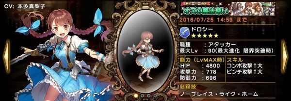 『オズの魔法使い』から「★5ドロシー」「★5ブリキ」「★5カカシ」「★5ライオン」が参戦!