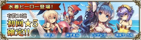 「★5美女ラ・ベル(サマー)」「★5赤ずきん(サマー)」の4人が可愛い水着を身にまとって参戦!