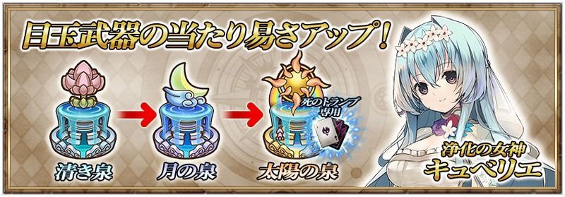 目玉武器の当たり易さは「清き泉」<「月の泉」<「太陽の泉」の順になっています。