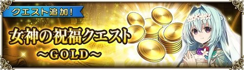 - 「女神の祝福」に追加される「女神の祝福クエスト~GOLD~」は「中級」「上級」「超級」3種類の難易度が用意されており、今までの曜日クエストよりも効率よくGOLDを稼ぐことが可能となります!