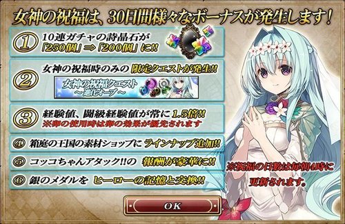 銀のメダルが余っている方は、女神の祝福期間中にぜひこの機能を利用しましょう。