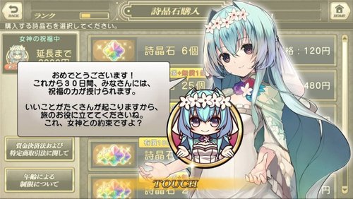 - 購入すると女神キュベリエが登場し、ホーム画面左上のアイコンに日付が表示されます。