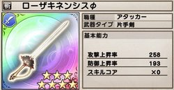 ![]() | 必殺技「ローゼン・ドライ・スピア」 きれいな薔薇には棘がある。 使い古された表現だが、美しく、かつ激しい彼女の槍撃こそ、まさに薔薇の乱舞。 消費: [効果]同一線上の着弾した敵に広範囲3連撃(光・爆発)。 |