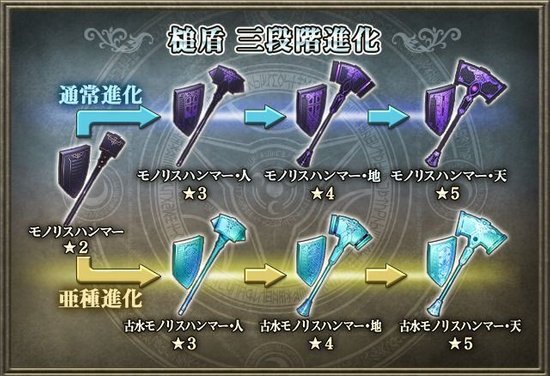 | モノリスハンマー・天 | ☆5 | 攻撃HP回復・大/闇効果↑大 | 219 | 216 | |