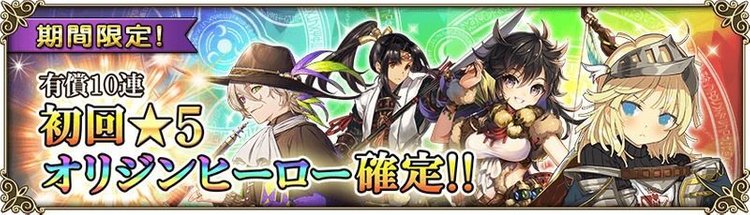 オリジンヒーローガチャの有償10連ガチャは初回☆5オリジンヒーロー確定!