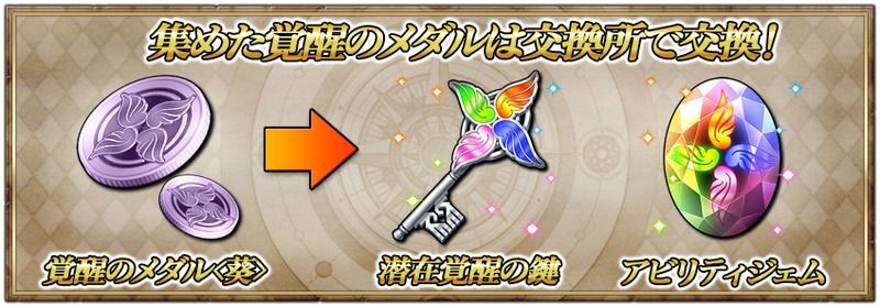『覚醒のメダル<葵>』は交換所で「潜在覚醒の鍵」や「アビリティジェム」と交換可能!