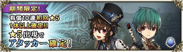 また、それぞれのガチャにて有償10連ガチャは初回☆5確定!