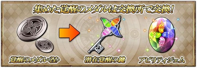 覚醒のメダルは、交換所で潜在覚醒の鍵やアビリティジェムと交換することができます。