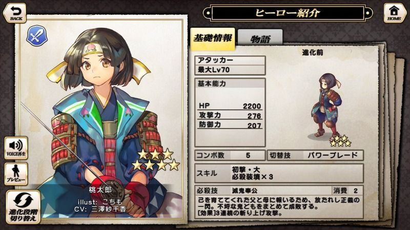 | 進化 | ★5桃太郎>★6桃太郎>★7桃太郎 |