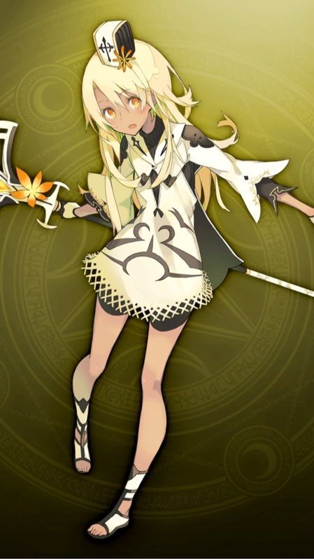| 白き女神スケエルの住まう神殿で、日々研鑚を積む神官見習いの少女。女神に次ぐ力をもつ四神官に憧れを抱いており、将来は彼女たちのような立派な神官になることを夢見る。生まれた時から神殿で過ごしたため外の世界を見たことがなく、修行を終えたら旅へ出たいと考えている。 | |