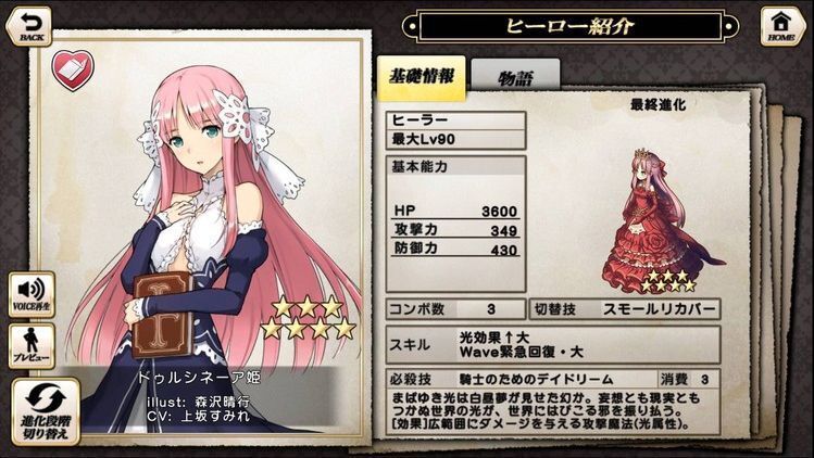 | 進化 | ★5ドゥルシネーア姫>★6ドゥルシネーア姫>★7ドゥルシネーア姫 |