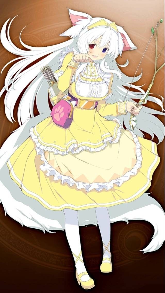 | 森の中の大きなお屋敷に仕えているメイド。四人組の中では一番のお姉さんで、のんびり屋さん。お昼寝が好きで目を離すと居眠りしている。雪のように白い毛並みの尻尾が自慢で、もふもふしたがる者は後を絶たない。普段は温厚だが、睡眠を邪魔すると毛を逆立てて威嚇するとか。 | |