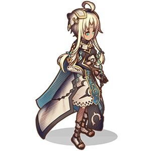 | 心を五本の黒き矢で射ぬかれ永遠の眠りについた女神スケエルに仕える高位四神官で、四つ子姉妹の次女。呪いで眠り続ける女神を守るため、姉妹の中でただ一人国に残り神殿の人々を滅びの恐怖から守っている。内気で心配性の泣き虫。旅先の姉妹から来る便りを心待ちにしている。 | |
