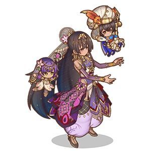 | シャフリヤール王のもとへ嫁いだ賢女。女性を信じず、妻を次々と殺していたシャフリヤール王のために夜毎、物語を語って聞かせた。物語は千と一夜に渡って紡がれ、やがて王を改心させるに至る。見知らぬ世界へと誘う王妃の物語の秘密を知っているのは妹のドニアザードのみ。 | |