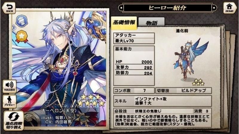 | 進化 | ★5オーベロン(天空)>★6オーベロン(天空)>★7オーベロン(天空) |