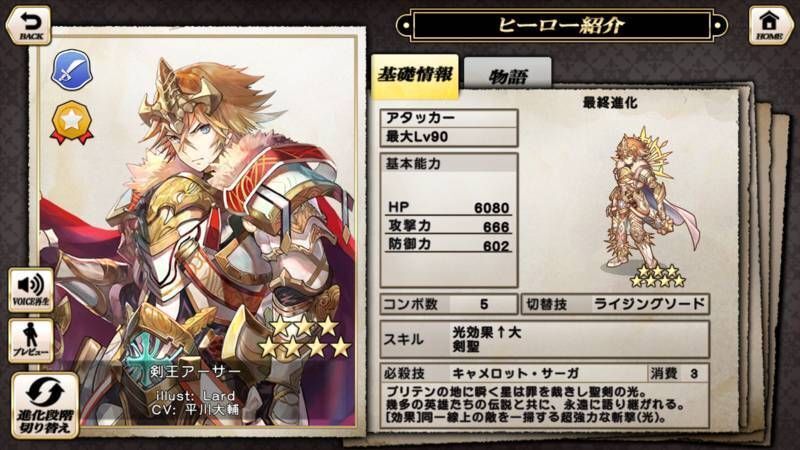 ★7剣王アーサーの基本データ