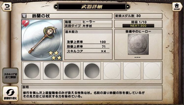 | 攻撃中効果R・50・・・リジェネの効果が通常攻撃中にも50%適用されます。 麻痺効果・中・・・攻撃した敵に対して中程度の麻痺効果を付加します。 毒効果・中・・・攻撃した敵に対して中程度の毒効果を付加します。 | |