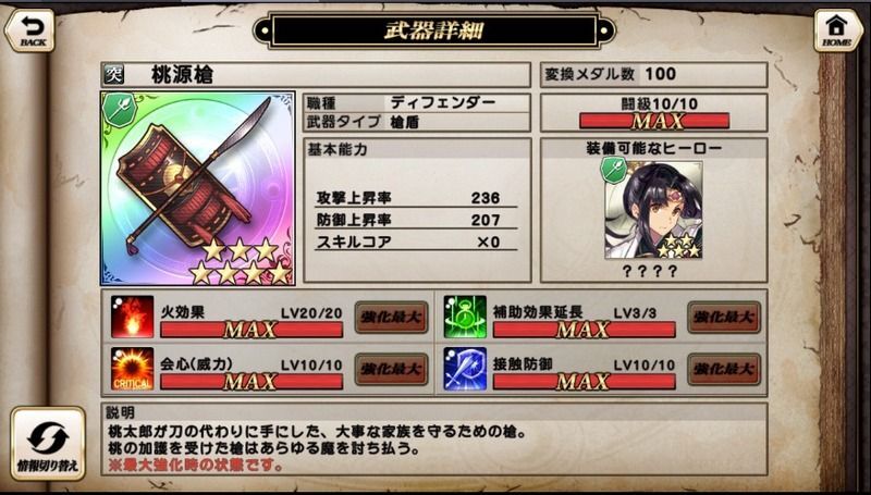 | 【エピソードタイトル】真説・桃と鬼 【実装日】2017年4月17日 ※入手方法の詳細は専用武器一覧ページをご確認ください。 | |