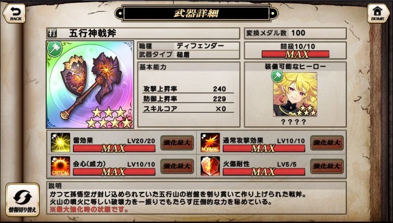 | レシピ入手方法 | ★7カオス・孫悟空 |