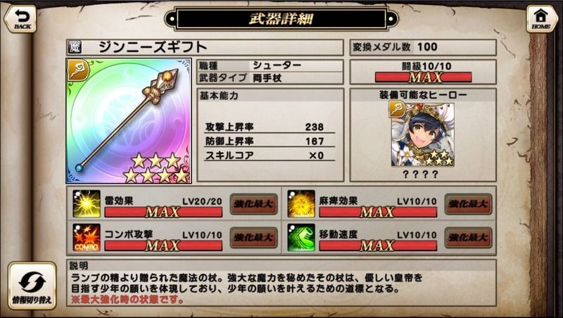 | スキル | 雷効果/コンボ攻撃/麻痺効果/移動速度 |