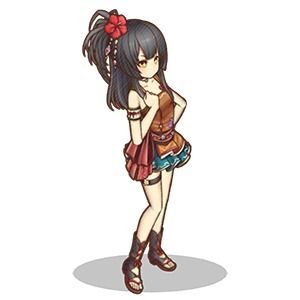 | 夏という季節は、普段と異なる人の側面を引き出すことがある。一見しただけでは気付かないが、実はシェインも普段よりハイテンションだったりする。貝殻を肩に掛け、静かに波の飛沫と戯れる彼女を見てそれに気付くのは、長い間ともに旅をしてきた仲間たちだけであろう。 | |
