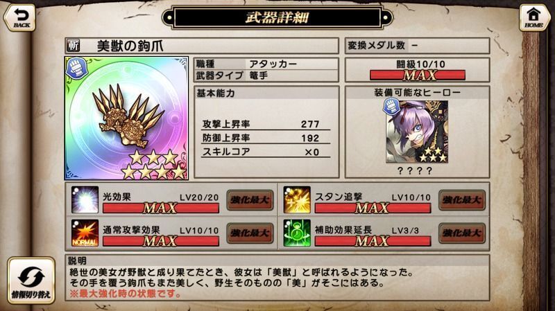 美獣の鉤爪の基本データ