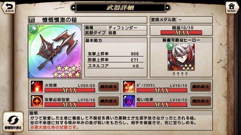 | スキル | 火効果/バーンラッシュ/攻撃必殺効果/呪い効果 |