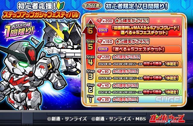 【ガンダムウォーズ】「初心者応援!ステップアップガシャフェスティバル」開催(2024年3月19日開催)