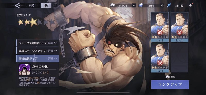 ハガモバでは覚醒ランクの段階によって、同盟キャラだけでなく同ランクキャラを素材にして覚醒ランクを上げることができます。