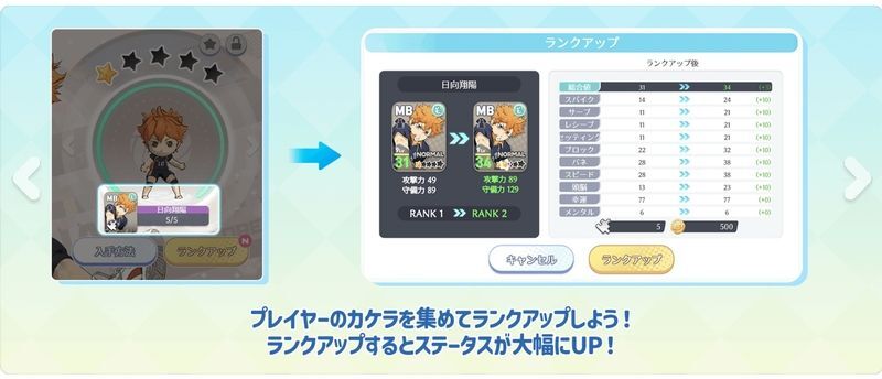 ハイドリ(ハイキュー!!タッチザドリーム)のランクアップのやり方の解説です。キャラの星上げについて効率的なやり方、カケラや結晶の集め方を紹介。ハイドリの攻略にお役立てください。