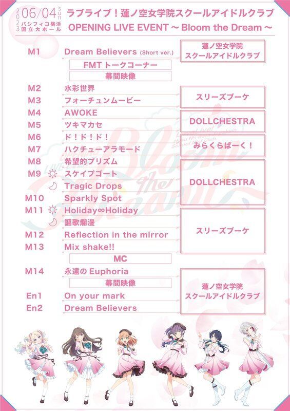 | 公演名 | ラブライブ!蓮ノ空女学院スクールアイドルクラブ OPENING LIVE EVENT ~Bloom the Dream~ |