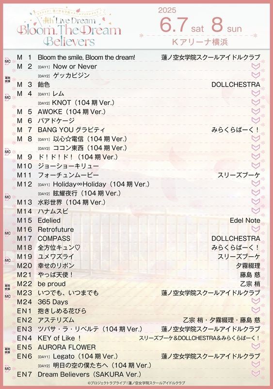 目次 (4th Live Dream ~Bloom, The Dream Believers~)