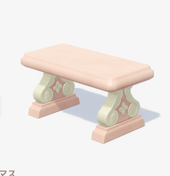 ![]() | 荘園・ベンチ (セット:荘園・ピンク) ■種類:アウトドア ■入手方法:ドングリ百貨店 | |