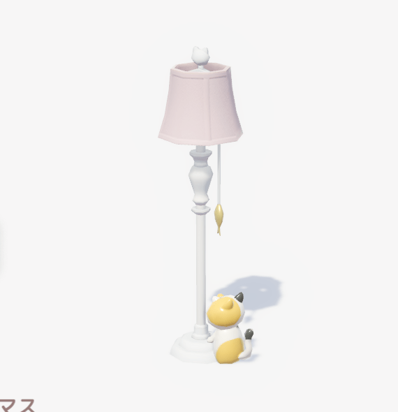 ![]() | ネコのフロアランプ (セット:かわいいミケ猫) ■種類:照明 ■入手方法:図鑑ポイント報酬 | |