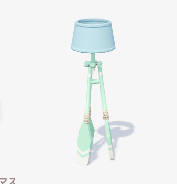 ![]() | マリン風フロアランプ (セット:爽やか潮風) ■種類:照明 ■入手方法:図鑑ポイント報酬 | |