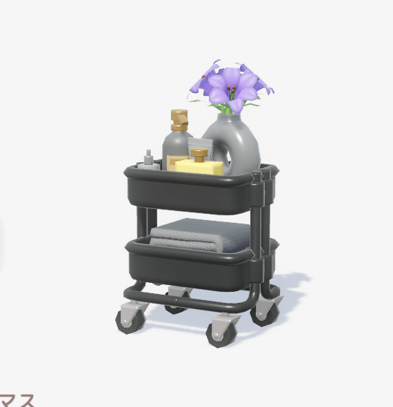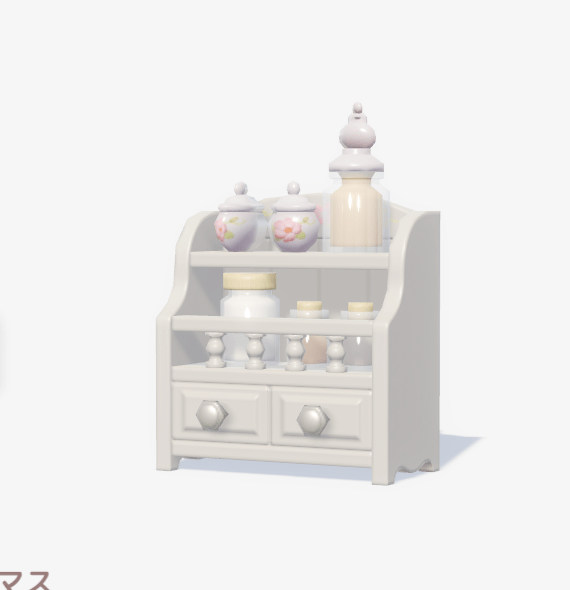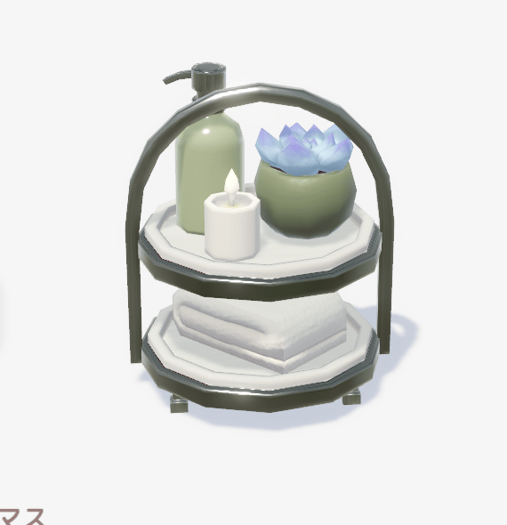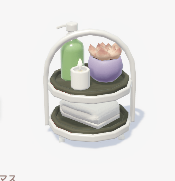 ![]() | ミニマルスキンケアグッズ入れ ■種類:装飾 ■入手方法:ボブ家具店 | |