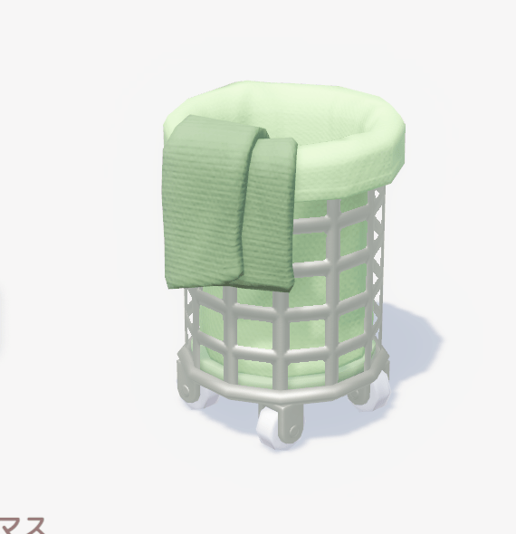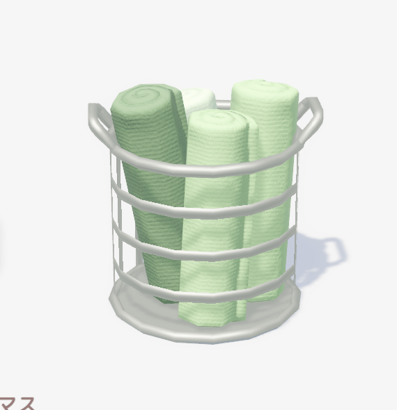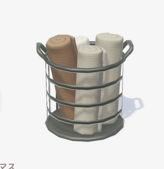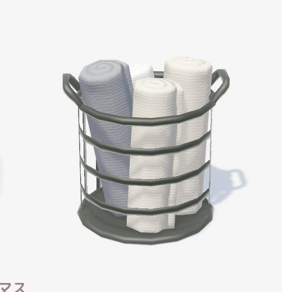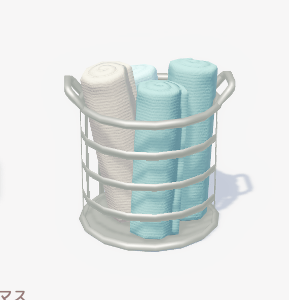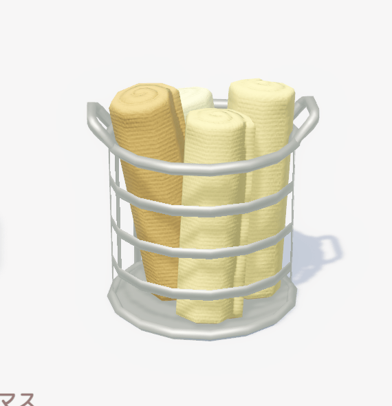 ![]() | ミニマルタオルバスケット ■種類:装飾 ■入手方法:ボブ家具店 | |