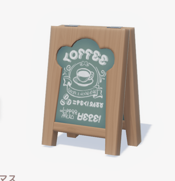 ![]() | レストラン黒板メニュー (セット:街角レストラン) ■種類:装飾 ■入手方法:ボブ家具店の展示台 | |
