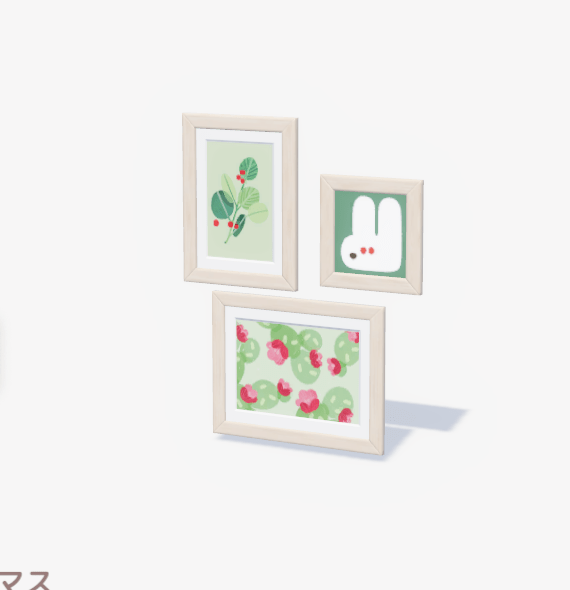 ![]() | ウサギと植物の掛け絵 ■種類:装飾 ■入手方法:ボブ家具店 | |