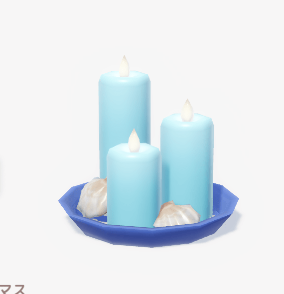 ![]() | マリン風キャンドル (セット:爽やか潮風) ■種類:装飾 ■入手方法:ボブ家具店の展示台 | |
