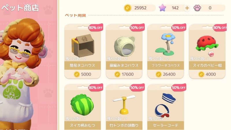 | 8 | 猫の飼育商店のペット衣装枠が5つに増える、もっと自動エサやり器購入可能 |