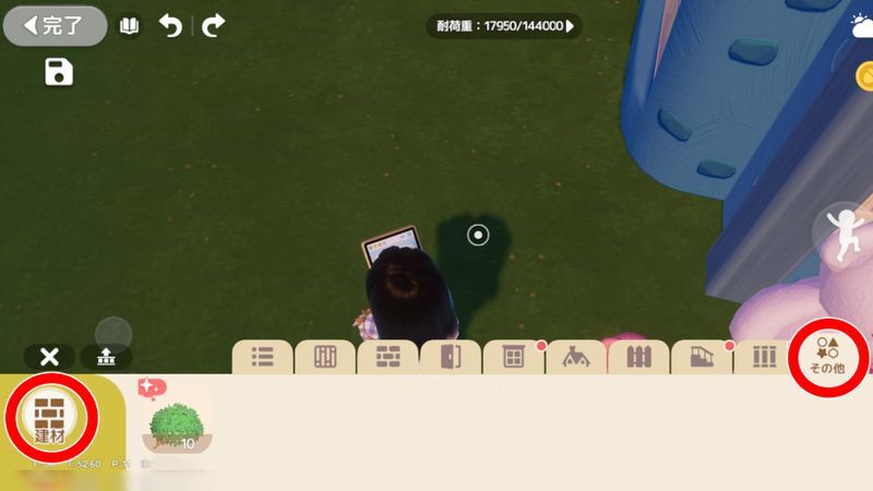 | 5 | ![]() 左下のボタンから「建材」にして右端の「その他」から購入した建材を選択 |
