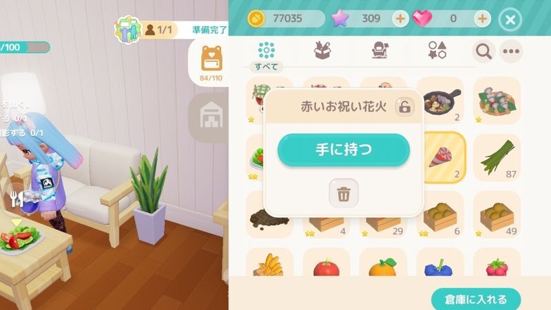| 4 | ![]() お祝い花火でお祝いする ┗バッグからお祝い花火を取り出し使用する。持っていない場合はカー・チンのショップなどで購入可能 |