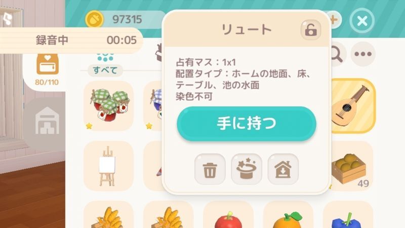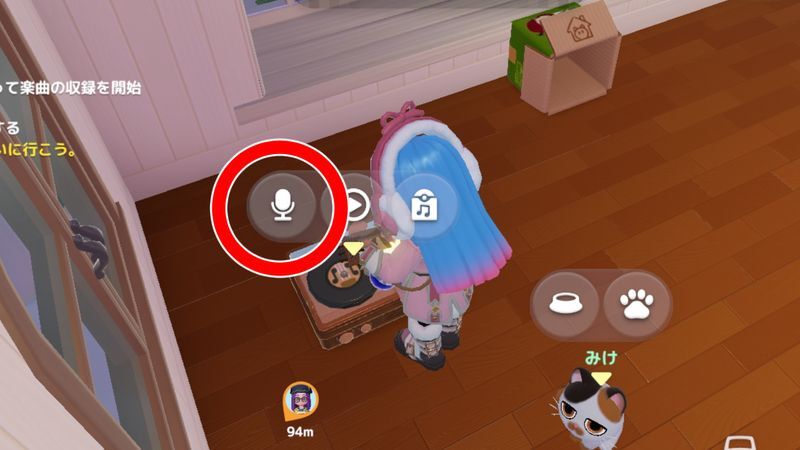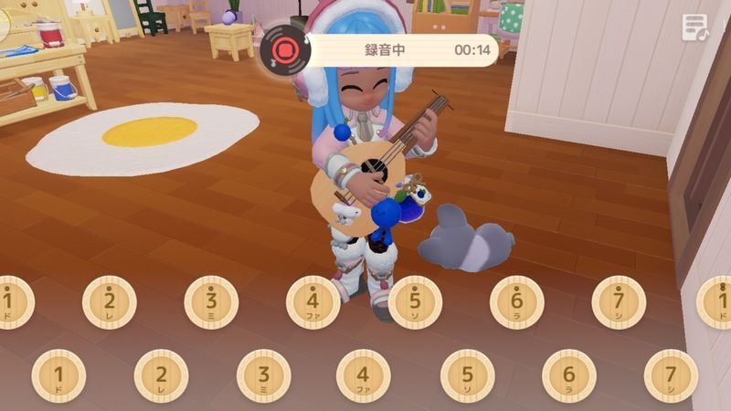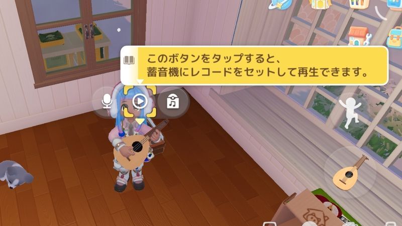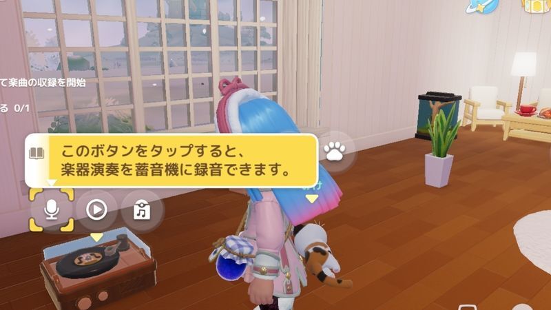 マイホームに蓄音機を置き、マイクボタンを調べると音楽収録が開始できます。もう1度蓄音機を調べると収録が止まります。