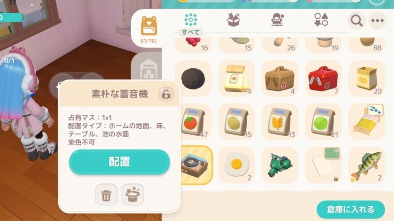 マイホームに戻り、素朴な蓄音機をバッグから取り出し設置します。