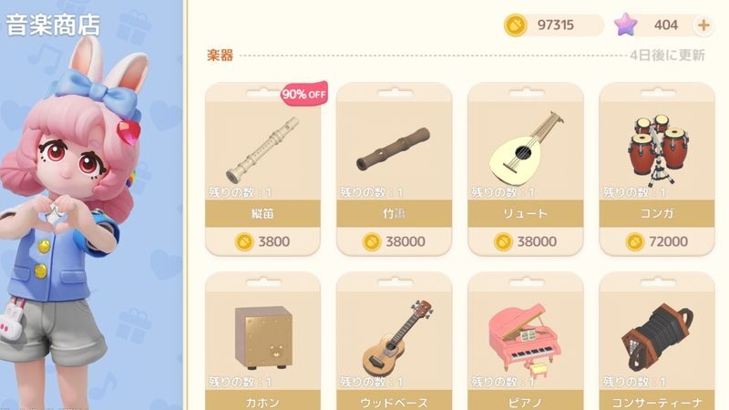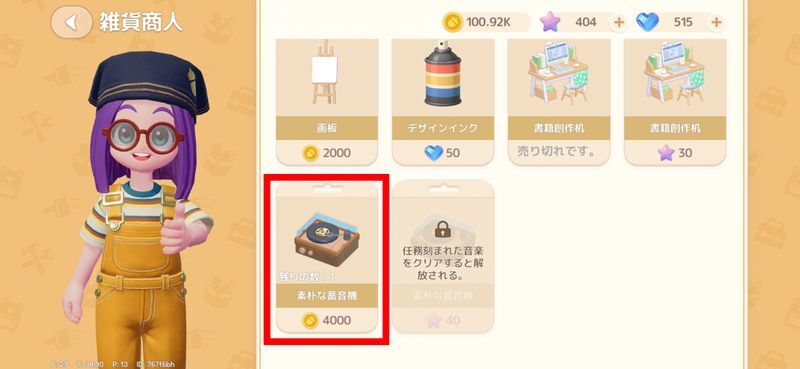 雑貨店で下までスクロールし、「素朴な蓄音機」を購入すると音楽収録が解放されます。