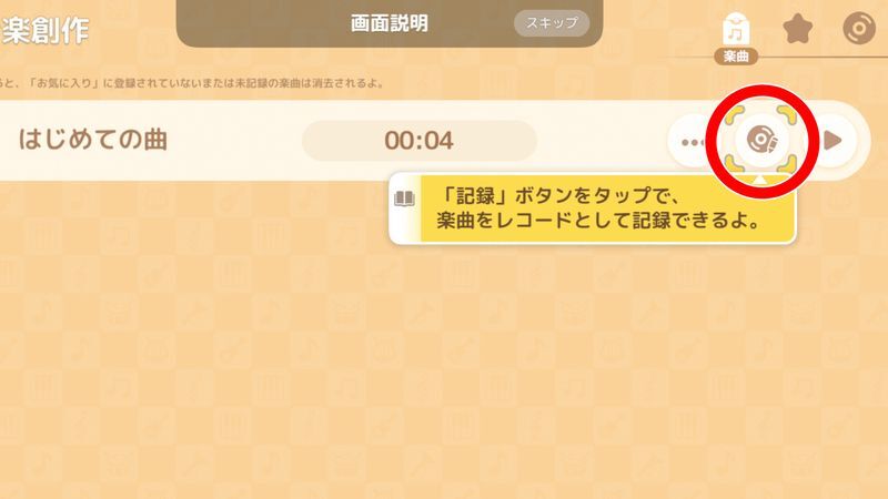 蓄音機から音楽管理画面を開き、記録ボタンから完成した音楽をレコードにします。