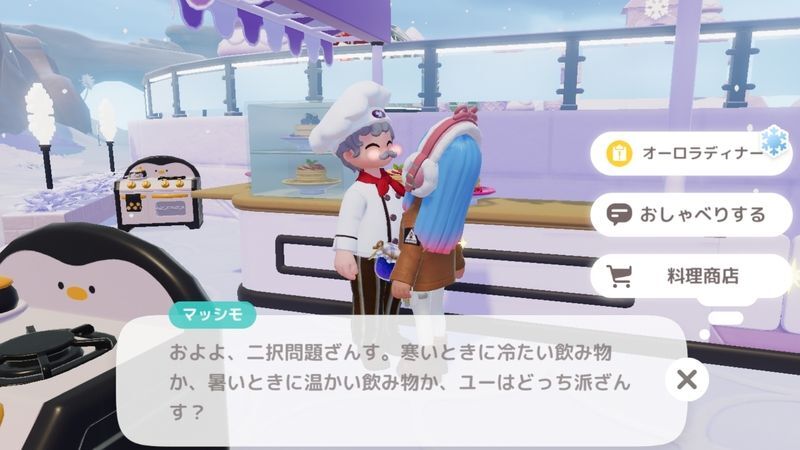 | 6 | ![]() アニーとアタラに話しかけ、「子ペンギンの材料パック」を獲得する |