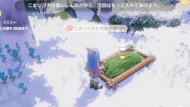 野生動物はそれぞれ好きな天気の時にエサを与えると親密度が多く上がりやすくなります。ほとんどの野生動物は虹が好きなので満腹まであたえましょう。